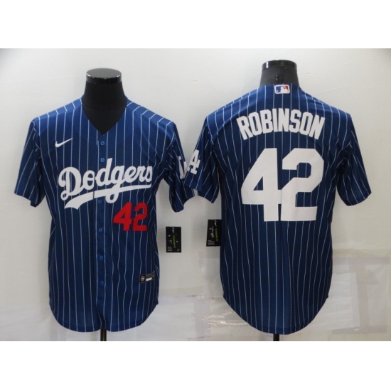 Men's Nike Los Angeles Dodgers #42 Jackie Robinson Blue Stripes Authentic Jersey
