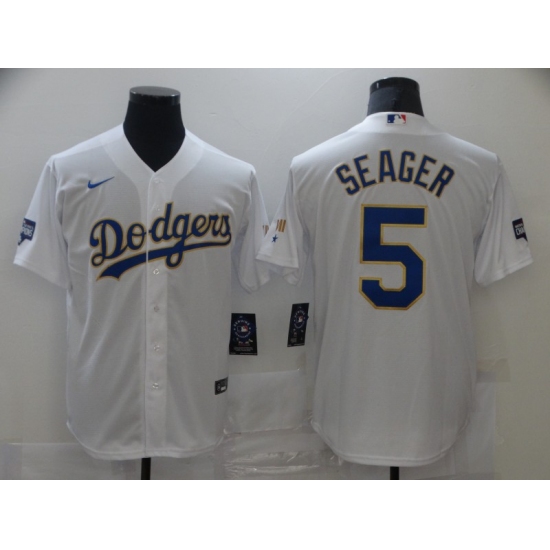 Men's Los Angeles Dodgers #5 Corey Seager Nike White 2020 World Series Authentic Jersey