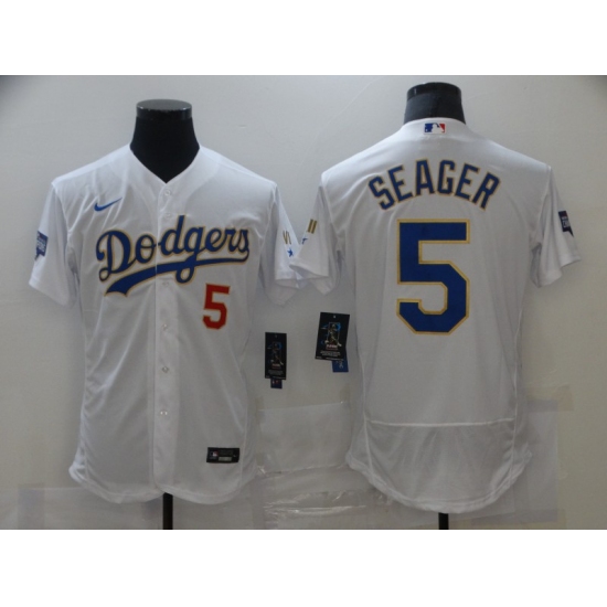 Men's Majestic Los Angeles Dodgers #5 Corey Seager White Home Flex Base Authentic Collection 2018 World Series MLB Jersey