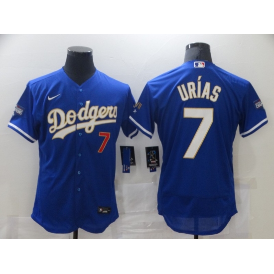 Men's Nike Los Angeles Dodgers #7 Julio Urias Blue Elite Champions Authentic Jersey