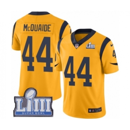 >Men's Nike Los Angeles Rams #44 Jacob McQuaide Limited Gold Rush Vapor Untouchable Super Bowl LIII Bound NFL Jersey