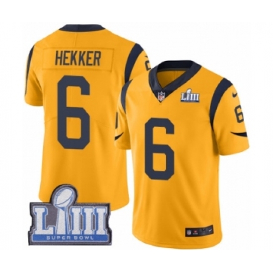 >Men's Nike Los Angeles Rams #6 Johnny Hekker Limited Gold Rush Vapor Untouchable Super Bowl LIII Bound NFL Jersey
