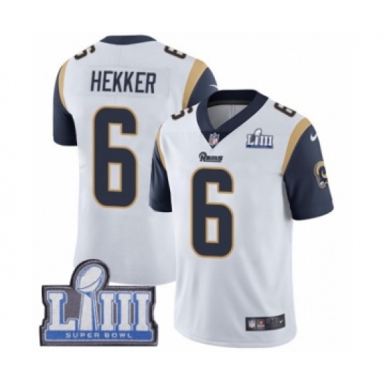Men's Nike Los Angeles Rams #6 Johnny Hekker White Vapor Untouchable Limited Player Super Bowl LIII Bound NFL Jersey