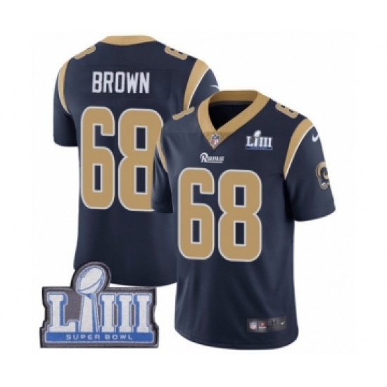 Men's Nike Los Angeles Rams #68 Jamon Brown Navy Blue Team Color Vapor Untouchable Limited Player Super Bowl LIII Bound NFL Jersey