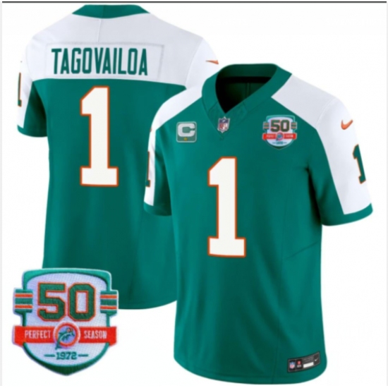 Men's Nike Miami Dolphins #1 Tua Tagovailoa White Green C 50ts Jersey