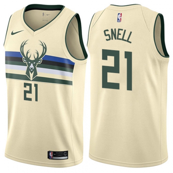 Home>NBA>Milwaukee Bucks>Tony Snell>Men's Nike Milwaukee Bucks #21 Tony Snell Swingman Cream NBA Jersey - City Edition