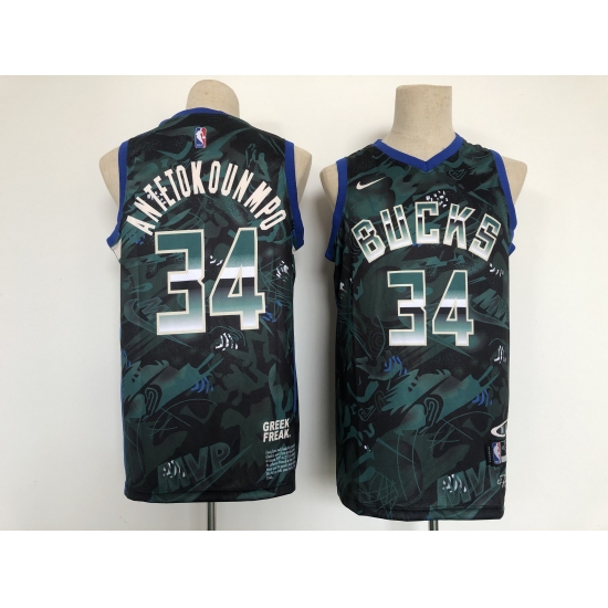 Men's Milwaukee Bucks #34 Giannis Antetokounmpo Green White Split Stitched Basketball Jersey