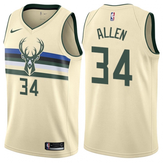 Men's Nike Milwaukee Bucks #34 Ray Allen Swingman Cream NBA Jersey - City Edition