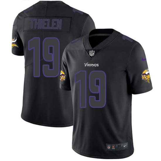 >Men's Nike Minnesota Vikings #19 Adam Thielen Limited Black Rush Impact NFL Jersey