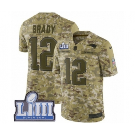 >Men's Nike New England Patriots #12 Tom Brady Limited Camo 2018 Salute to Service Super Bowl LIII Bound NFL Jersey