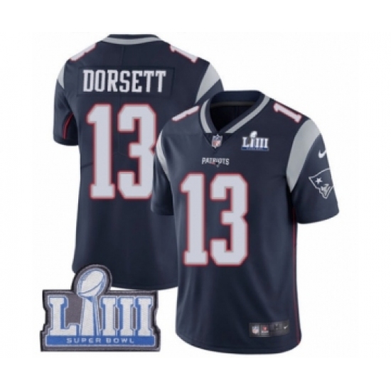 Men's Nike New England Patriots #13 Phillip Dorsett Navy Blue Team Color Vapor Untouchable Limited Player Super Bowl LIII Bound NFL Jersey