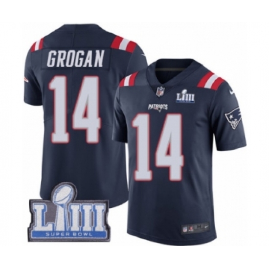 Men's Nike New England Patriots #14 Steve Grogan Limited Navy Blue Rush Vapor Untouchable Super Bowl LIII Bound NFL Jersey