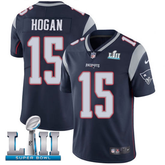 Men's Nike New England Patriots #15 Chris Hogan Navy Blue Team Color Vapor Untouchable Limited Player Super Bowl LII NFL Jersey