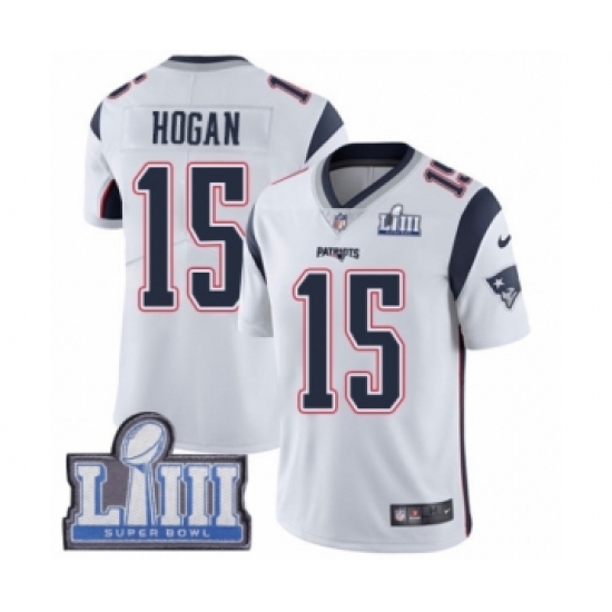 Men's Nike New England Patriots #15 Chris Hogan White Vapor Untouchable Limited Player Super Bowl LIII Bound NFL Jersey