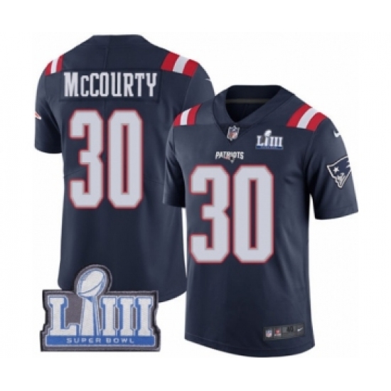 >Men's Nike New England Patriots #30 Jason McCourty Limited Navy Blue Rush Vapor Untouchable Super Bowl LIII Bound NFL Jersey