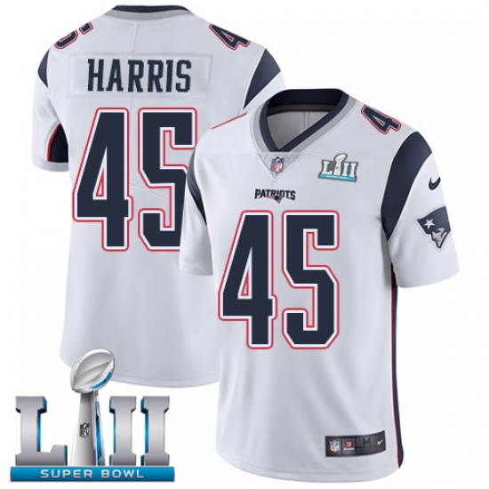 Men's Nike New England Patriots #45 David Harris White Vapor Untouchable Limited Player Super Bowl LII NFL Jersey
