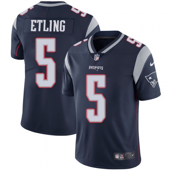 Men's Nike New England Patriots #5 Danny Etling Navy Blue Team Color Vapor Untouchable Limited Player NFL Jersey