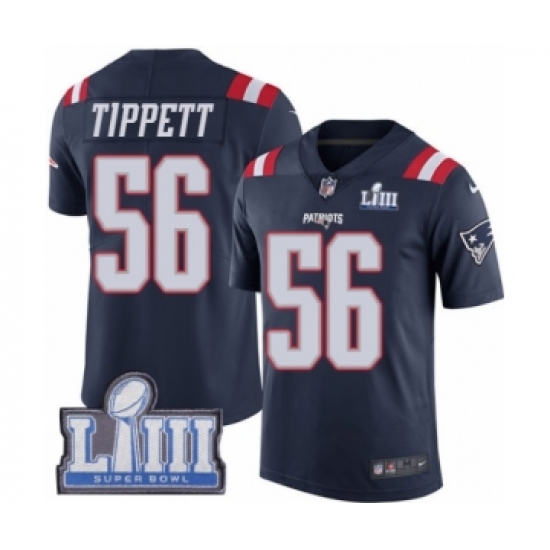 Men's Nike New England Patriots #56 Andre Tippett Limited Navy Blue Rush Vapor Untouchable Super Bowl LIII Bound NFL Jersey
