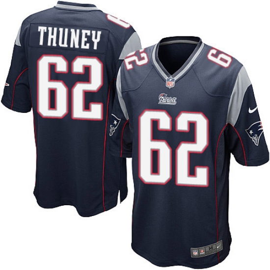 Home>NFL>New England Patriots>Joe Thuney>Men's Nike New England Patriots #62 Joe Thuney Game Navy Blue Team Color NFL Jersey