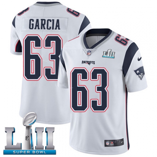Men's Nike New England Patriots #63 Antonio Garcia White Vapor Untouchable Limited Player Super Bowl LII NFL Jersey