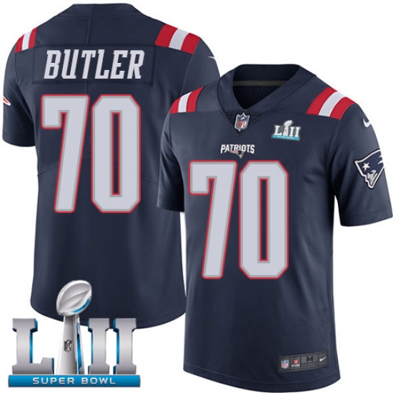 Men's Nike New England Patriots #70 Adam Butler Limited Navy Blue Rush Vapor Untouchable Super Bowl LII NFL Jersey