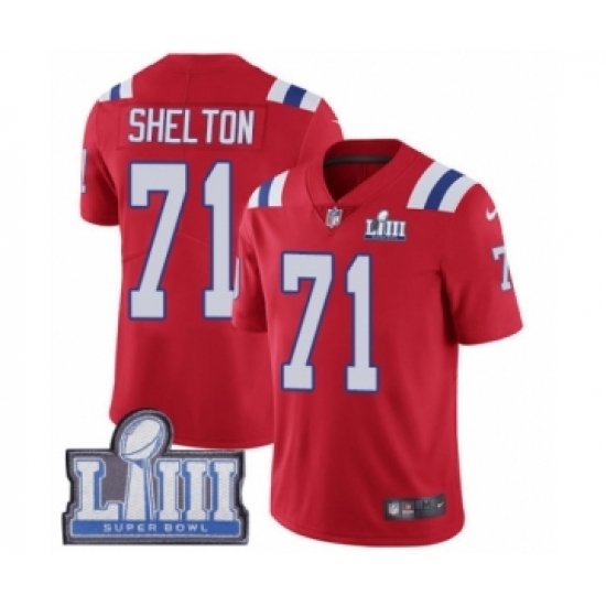 >Men's Nike New England Patriots #71 Danny Shelton Red Alternate Vapor Untouchable Limited Player Super Bowl LIII Bound NFL
