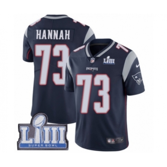 Men's Nike New England Patriots #73 John Hannah Navy Blue Team Color Vapor Untouchable Limited Player Super Bowl LIII Bound NFL Jersey