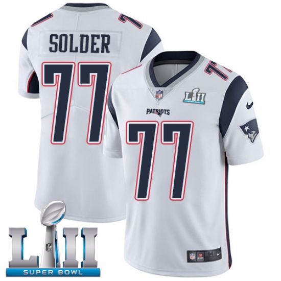 Men's Nike New England Patriots #77 Nate Solder White Vapor Untouchable Limited Player Super Bowl LII NFL Jersey