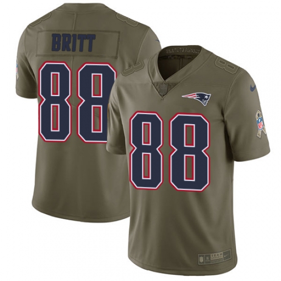 >Men's Nike New England Patriots #88 Kenny Britt Limited Olive 2017 Salute to Service NFL Jersey