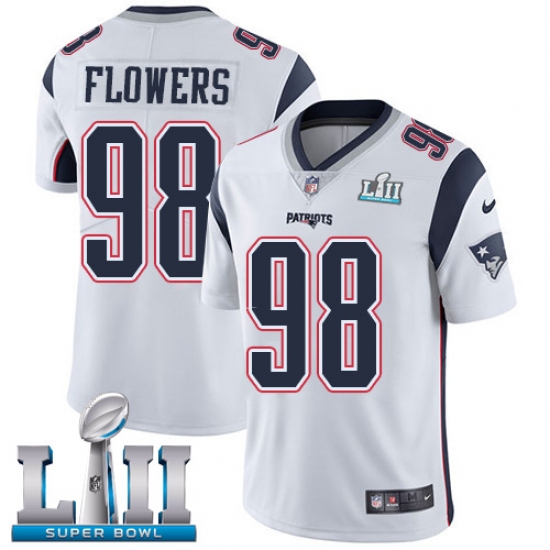 Home>NFL>New England Patriots>Trey Flowers>Men's Nike New England Patriots #98 Trey Flowers White Vapor Untouchable Limited Player Super Bowl LII NFL Jersey