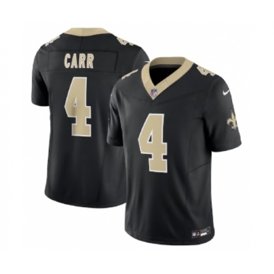 >Men's Nike New Orleans Saints #4 Derek Carr Black 2023 F.U.S.E. Vapor Untouchable Limited Football Stitched Jersey