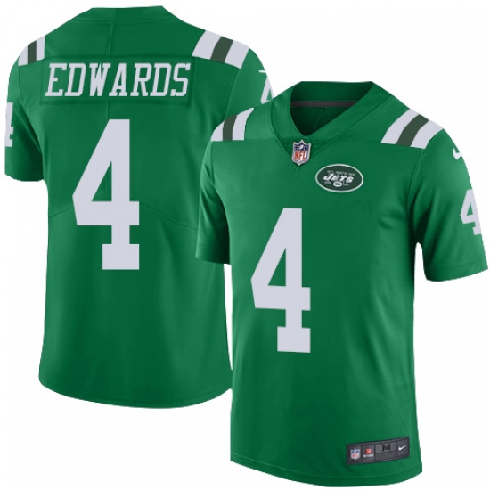Home>NFL>New York Jets>Lac Edwards>Men's Nike New York Jets #4 Lac Edwards Limited Green Rush Vapor Untouchable NFL Jersey