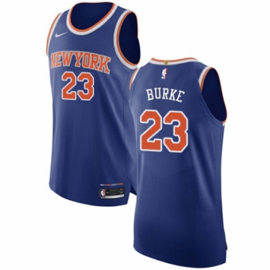 >Men's Nike New York Knicks #23 Trey Burke Authentic Royal Blue NBA Jersey - Icon Edition
