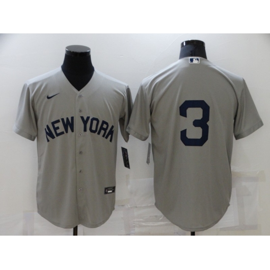 Men's Majestic New York Yankees #3 Babe Ruth Replica Grey Road MLB Jersey