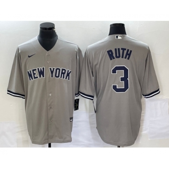 Men's Nike New York Yankees #3 Babe Ruth Grey Stitched Cool Base Nike Jersey