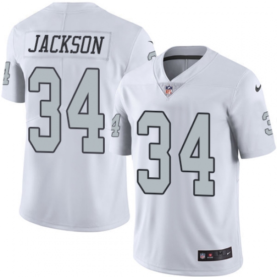 Home>NFL>Oakland Raiders>Bo Jackson>Men's Nike Oakland Raiders #34 Bo Jackson Limited White Rush Vapor Untouchable NFL Jersey