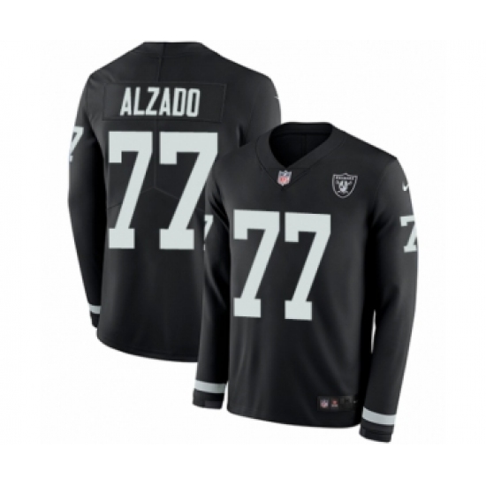 >Men's Nike Oakland Raiders #77 Lyle Alzado Limited Black Therma Long Sleeve NFL Jersey