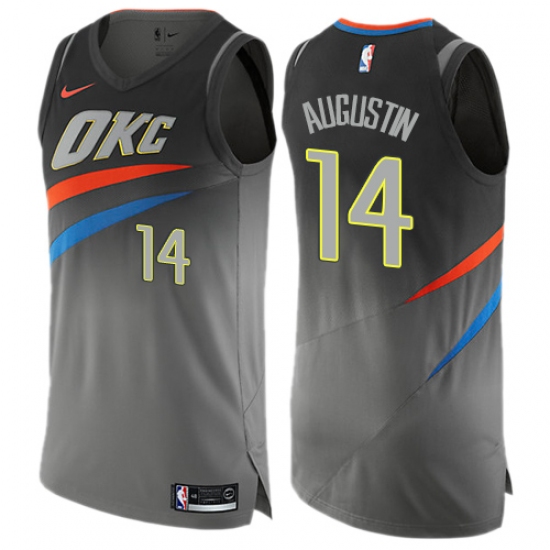 >Men's Nike Oklahoma City Thunder #14 D.J. Augustin Authentic Gray NBA Jersey - City Edition