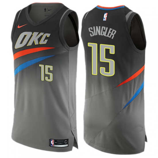Home>NBA>Oklahoma City Thunder>Kyle Singler>Men's Nike Oklahoma City Thunder #15 Kyle Singler Authentic Gray NBA Jersey - City Edition