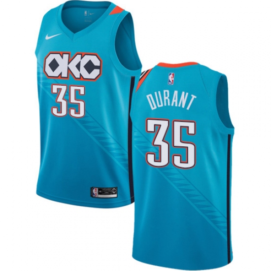 >Men's Nike Oklahoma City Thunder #35 Kevin Durant Swingman Turquoise NBA Jersey - City Edition