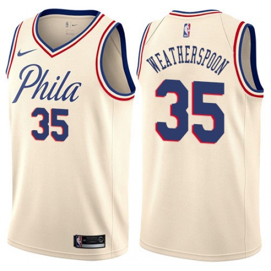 Home>NBA>Philadelphia 76ers>Clarence Weatherspoon>Men's Nike Philadelphia 76ers #35 Clarence Weatherspoon Authentic Cream NBA Jersey - City Edition
