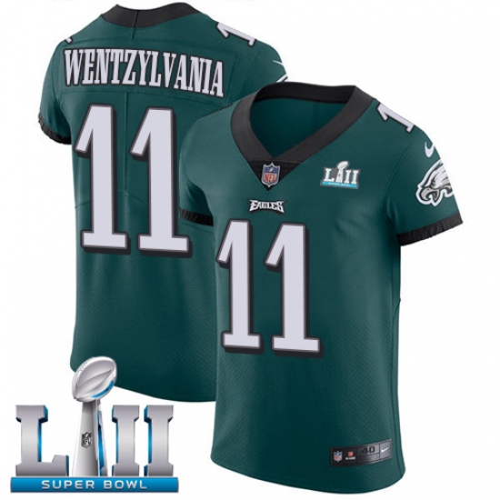 Men's Nike Philadelphia Eagles #11 Carson Wentz Elite Midnight Green Team Color Wentzylvania Super Bowl LII NFL Jersey