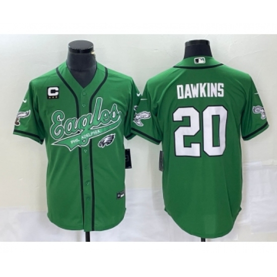 >Men's Nike Philadelphia Eagles #20 Brian Dawkins Green C Cool Base Stitched Baseball Jersey