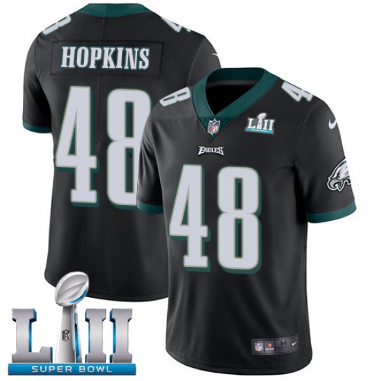 Men's Nike Philadelphia Eagles #48 Wes Hopkins Black Alternate Vapor Untouchable Limited Player Super Bowl LII NFL Jersey