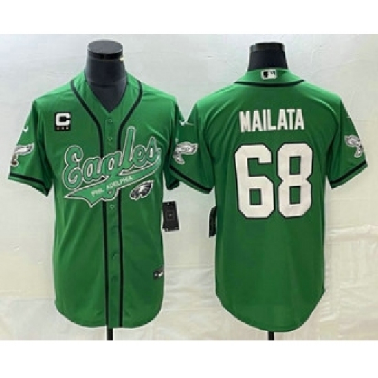 Men's Nike Philadelphia Eagles #68 Jordan Mailata Green C Cool Base Stitched Baseball Jersey