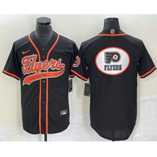 Men's Nike Philadelphia Flyers Black Team Big Logo Cool Base Stitched Baseball Jersey