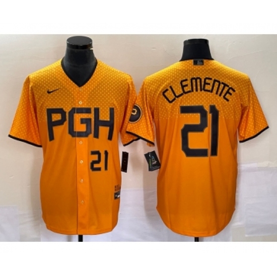 Men's Nike Pittsburgh Pirates #21 Roberto Clemente Gold 2023 City Connect Stitched Jersey 1