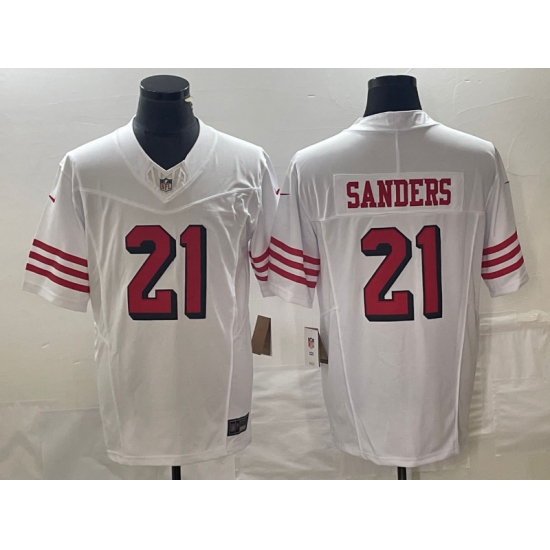 >Men's Nike San Francisco 49ers #21 Deion Sanders White 2023 F.U.S.E. Vapor Untouchable Stitched Football Jersey