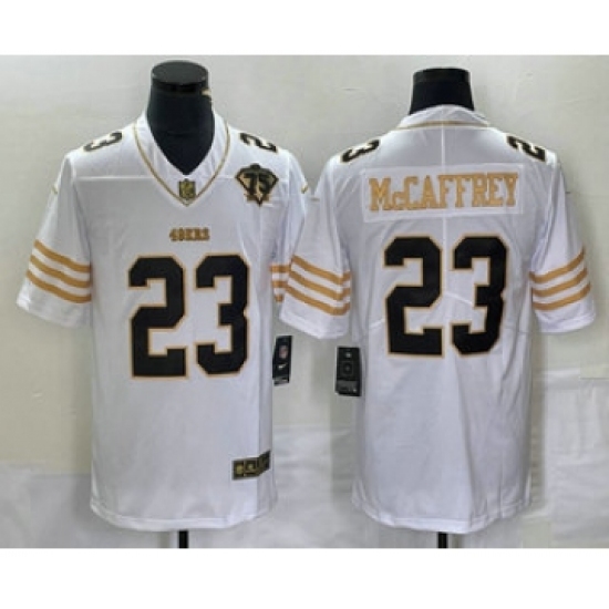 Men's Nike San Francisco 49ers #23 Christian McCaffrey White 75th Golden Edition Stitched Limited Jersey
