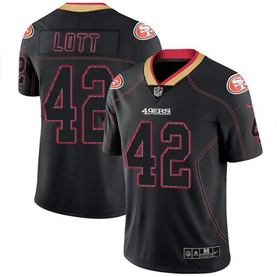>Men's Nike San Francisco 49ers #42 Ronnie Lott Limited Lights Out Black Rush NFL Jersey